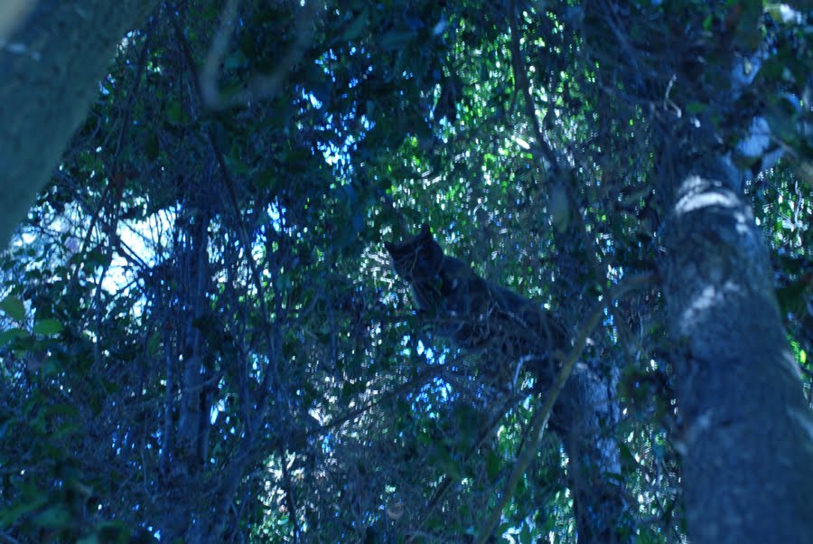 I can't believe it has been so long since my last post! I am so sorry, but I had a lot of napping, shredding plastic and newspaper to finish before I could get back to my peeps. Anyway, now it is almost spring and my juices are flowing. Here is a picture of the cat-Devil that hides in my back yard. Can you see her? she thinks she is so clever....................grrrrrrrrrrrr